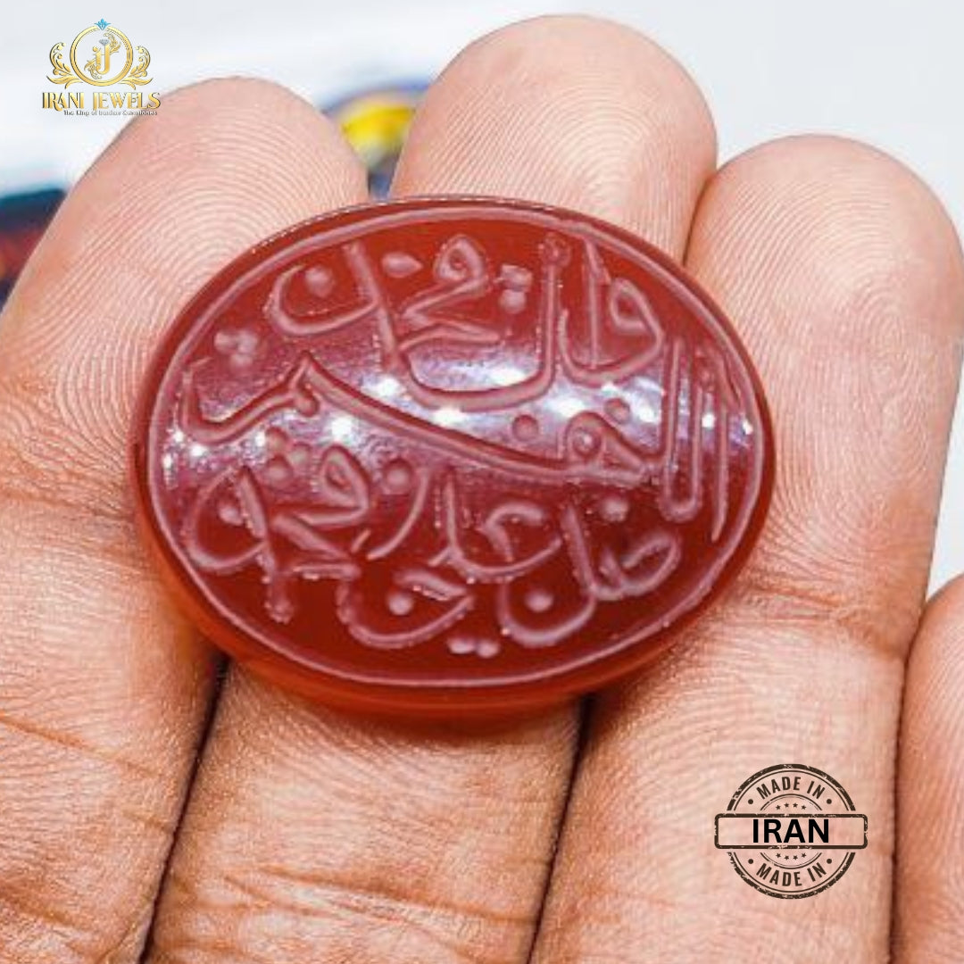 Honor your spiritual connection with the Darood Sharif Engraved Aqeeq Stone, intricately carved with the sacred blessings upon the Prophet Muhammad (PBUH). This gemstone is a beautiful reminder of love, peace, and devotion — crafted to inspire the heart and calm the soul.