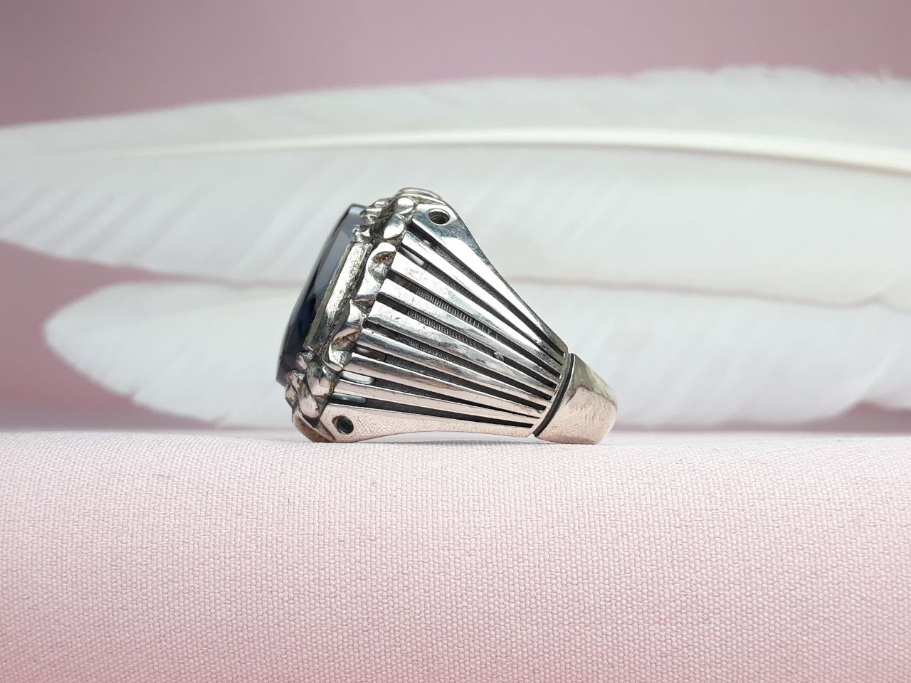 Experience the elegance of a handmade silver ring, created in Iran and set with a naturally veined Shajari Aqeeq stone from Khorasan.
